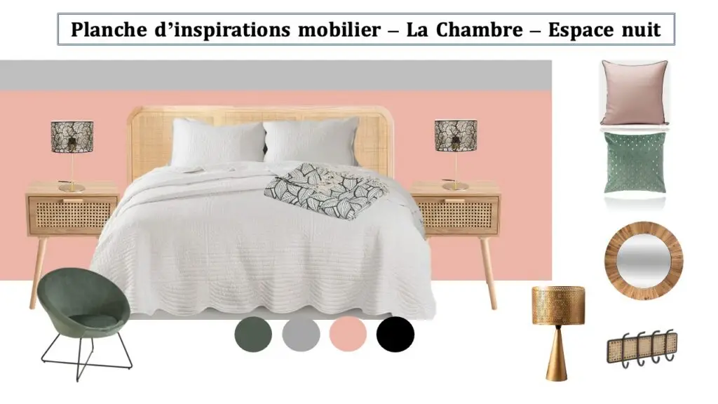 ✔️ Un moodboard couleurs et textures pour visualiser l’ambiance.